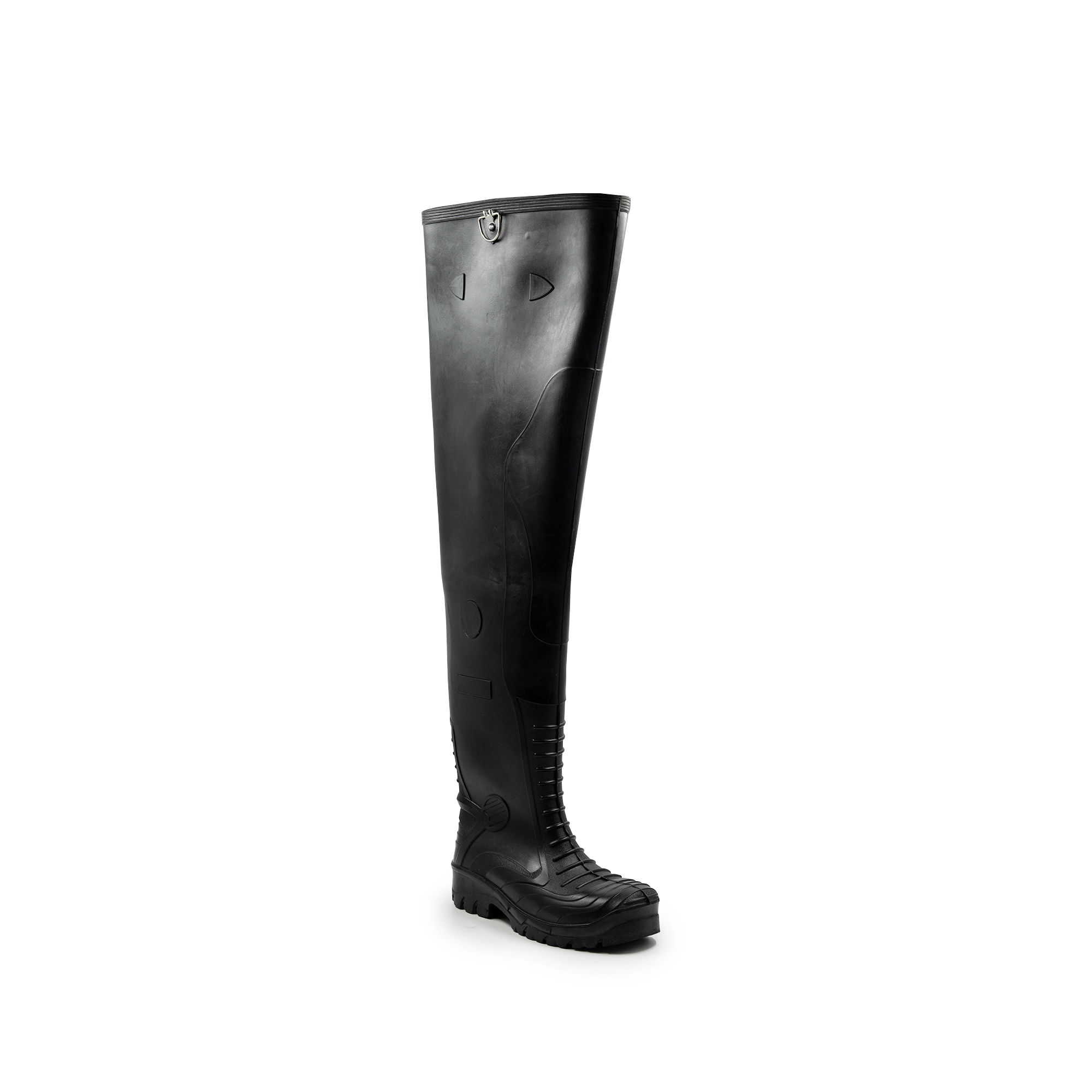 - Bota impermeable con punta de acero y conribete en la parte superior.